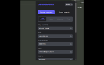 테스트 데이터 생성기 - PESEL, NIP, Dowód는 애플리케이션 테스트를 위해 유효한 폴란드 개인 데이터를 요구하는 테스터와 개발자를 위해 설계된 Chrome 애드온입니다. 이 무료 도구는 사용자가 단 한 번의 클릭으로 정확한 PESEL, NIP, REGON 번호 및 기타 개인 정보를 생성할 수 있게 하여 폴란드 애플리케이션의 테스트 프로세스를 상당히 가속화합니다. 이는 온라인에서 샘플 데이터를 검색할 필요를 없애고 브라우저에서 직접 원활한 경험을 제공합니다.
